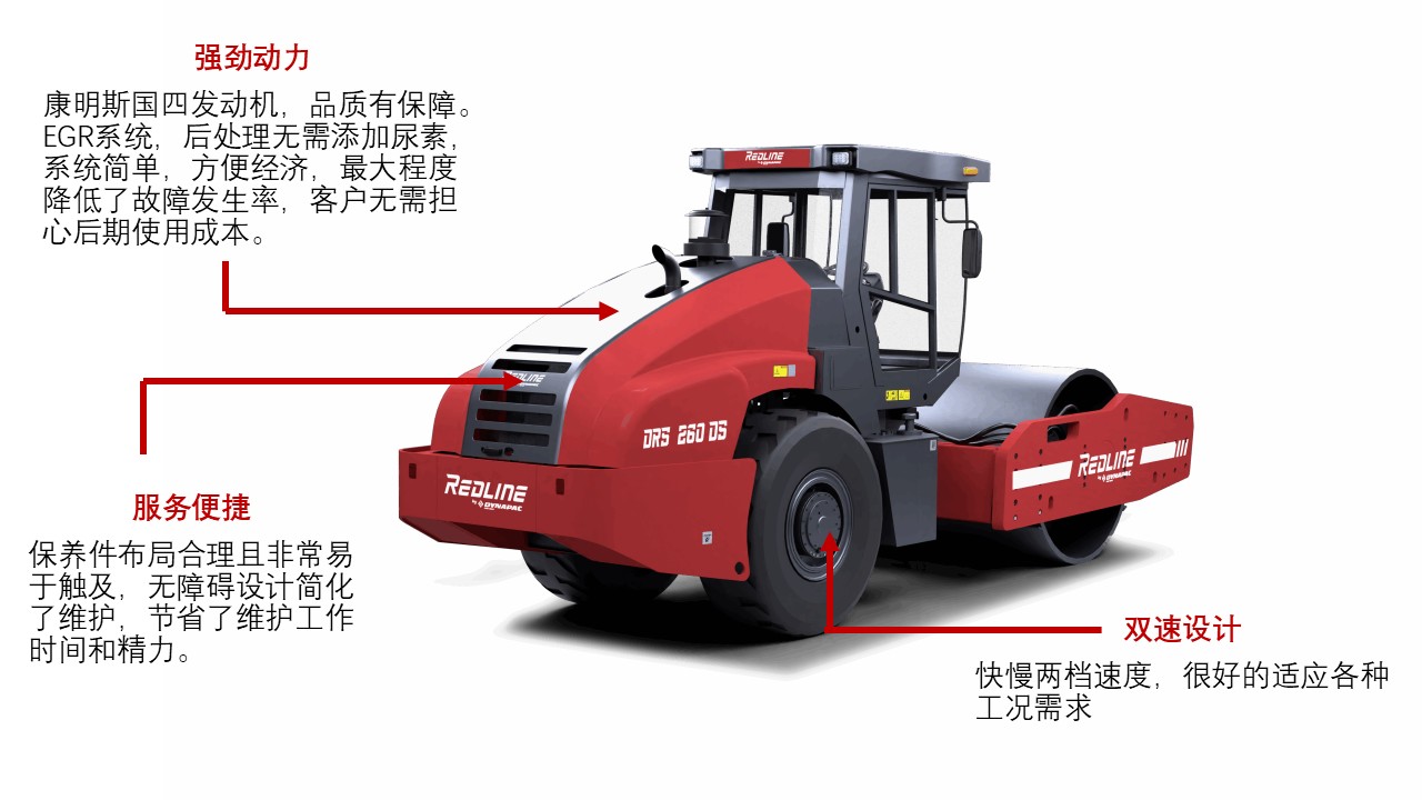 DRS230D/DS,DRS260D/DS的紧凑设计为驾驶员提供了开阔的视野,在您的压实工作中,以精准操作优化作业流程,以卓越性能和安全性提升项目水平。
